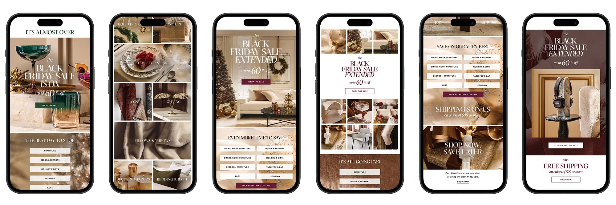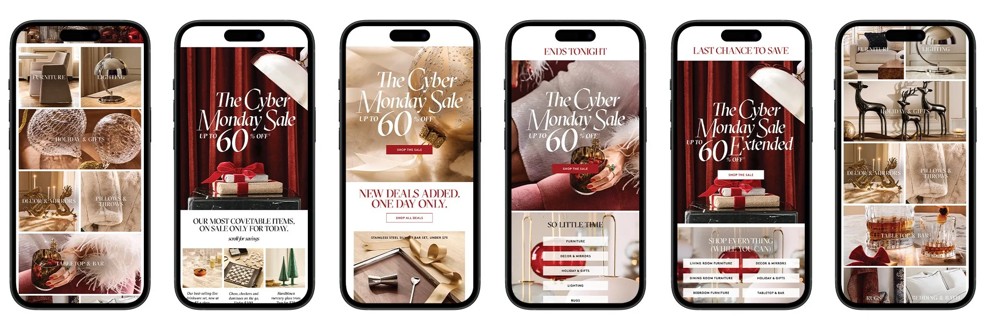Black Friday is a big deal. And in the retail world, it’s the Super Bowl of big deals. As Lead Art Director on CB2’s 2024 Black Friday/Cyber Monday campaign, I created multiple lockups, color scheme, image and animation direction for the week long promotion. I also created 18 emails, email banners, paid digital display, and provided direction to other channels like e-commerce, social, and in-store.