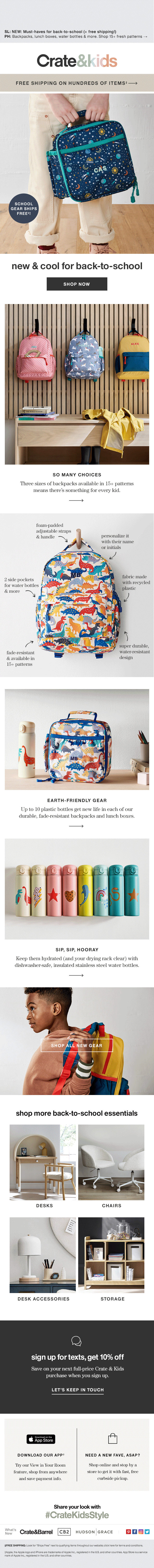 As Senior Art Director of Email at Crate & Barrel I directed the email creative team in the design of email layouts for Crate & Kids. This role also included creating a modular design system and overseeing and applying 3 brand pivots to the email channel.