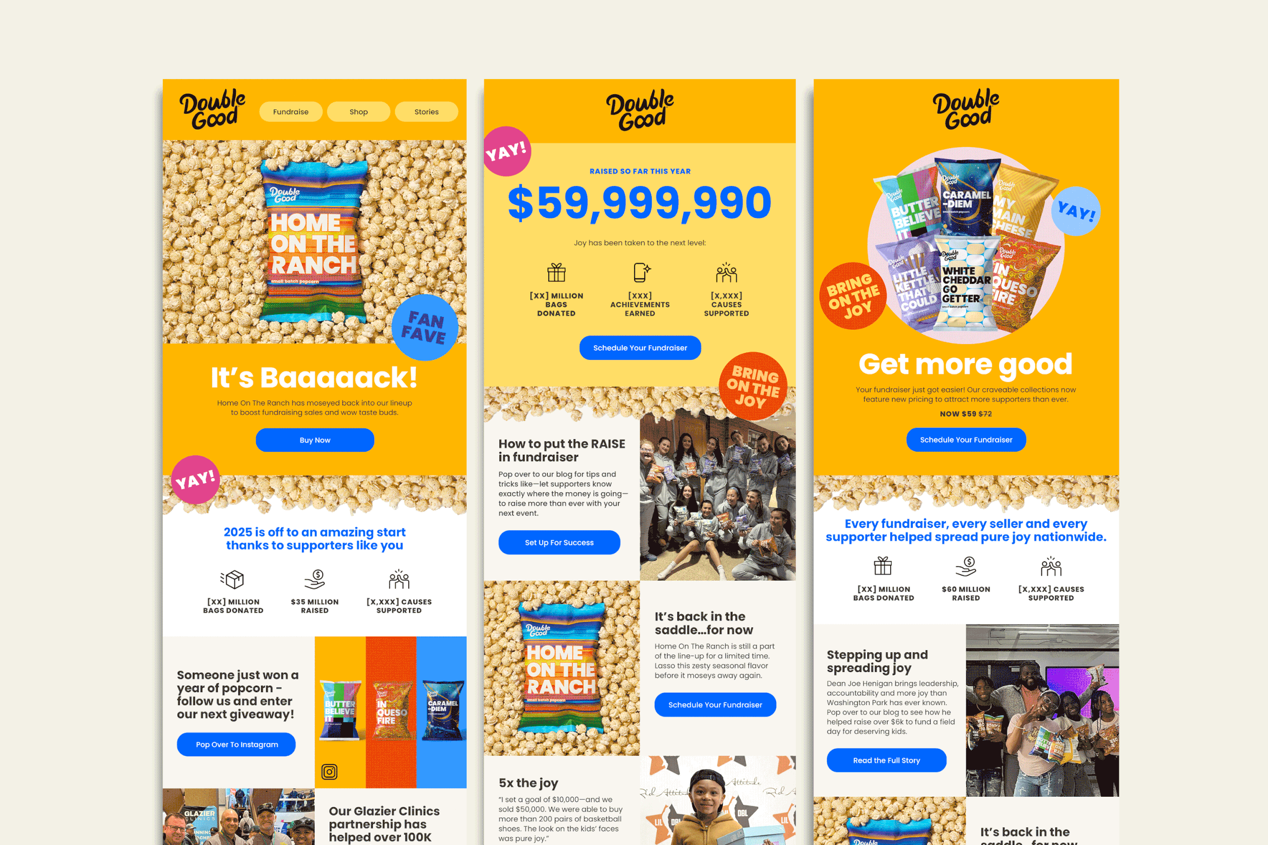 A collective of projects ranging from digital to print for the virtual fundraising company, Double Good. From concept pitch to final creative these executions surpassed benchmarks.